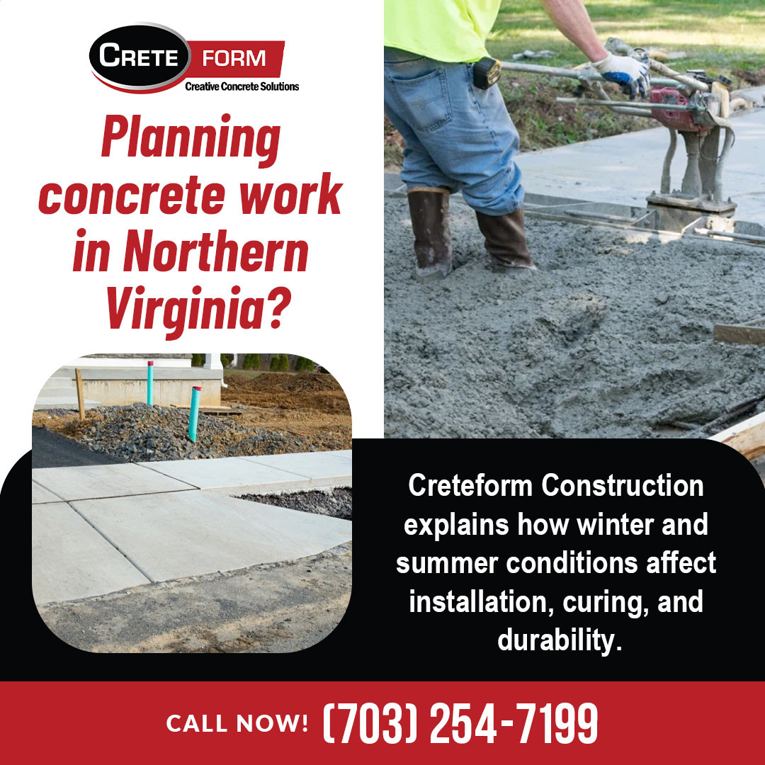 Original Source: https://creteform.com/winter-vs-summer-concrete-projects-practical-guide-by-concrete-contractors-in-manassas-va/