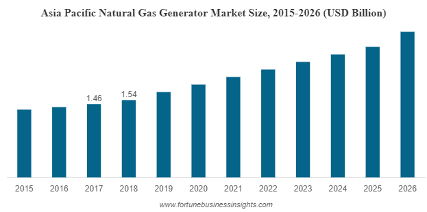 Pune, India, Aug. 03, 2022 (GLOBE NEWSWIRE) -- The global natural gas generator market size is expected to grow from USD 4.81 billion in 2018 to USD 7.71 billion by 2026, exhibiting a CAGR of 6.2% during the forecast period. The increasing awareness regarding the use of natural gas and sustainable products will emerge in favour of market growth., states Fortune Business Insights™, in its report titled Natural Gas Generator Market Size, Share and Global Trend by Power Rating (Below 75kVA, 75-375kVA, 375-750kVA, above 750kVA), Application (Stand-by and Continuous), By End-User (Residential, Commercial, and Industrial), and Geography Forecast till 2026.