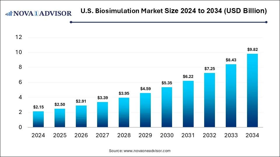 U.S. Biosimulation Market Size 2024 to 2034 (USD Billion)