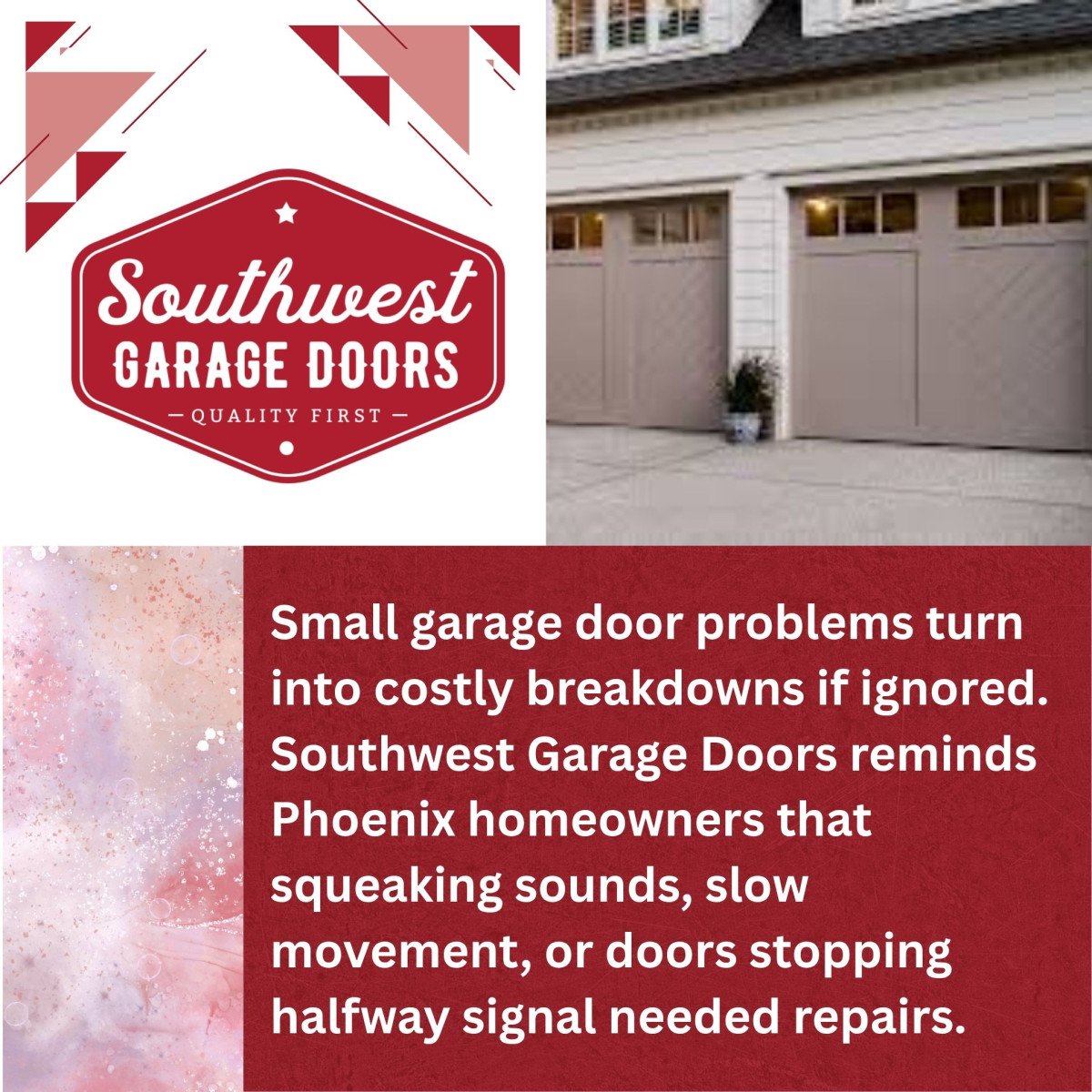 Phoenix, AZ: Many homeowners overlook small garage door problems, thinking they can wait for repairs. However, these minor issues often turn into costly and inconvenient breakdowns. Southwest Garage Doors reminds homeowners across the Phoenix area that regular inspection and timely garage repair can prevent serious safety and mechanical problems.